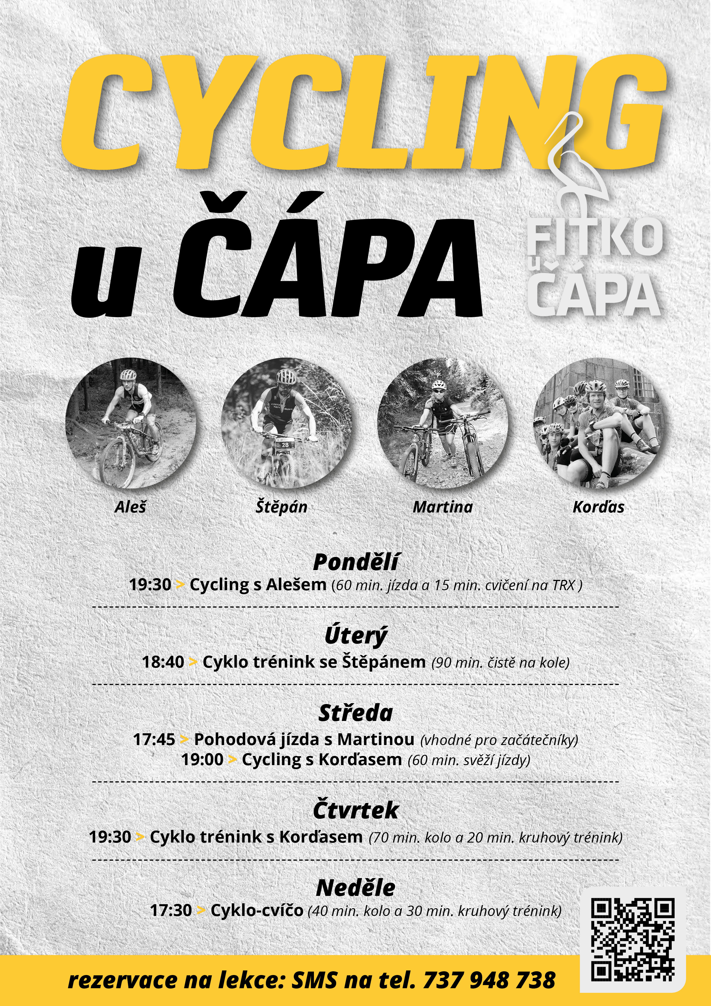 úterý: 17:30 Fitness jumping s Luckou,18:40 Cyklo trénink se Štěpánem